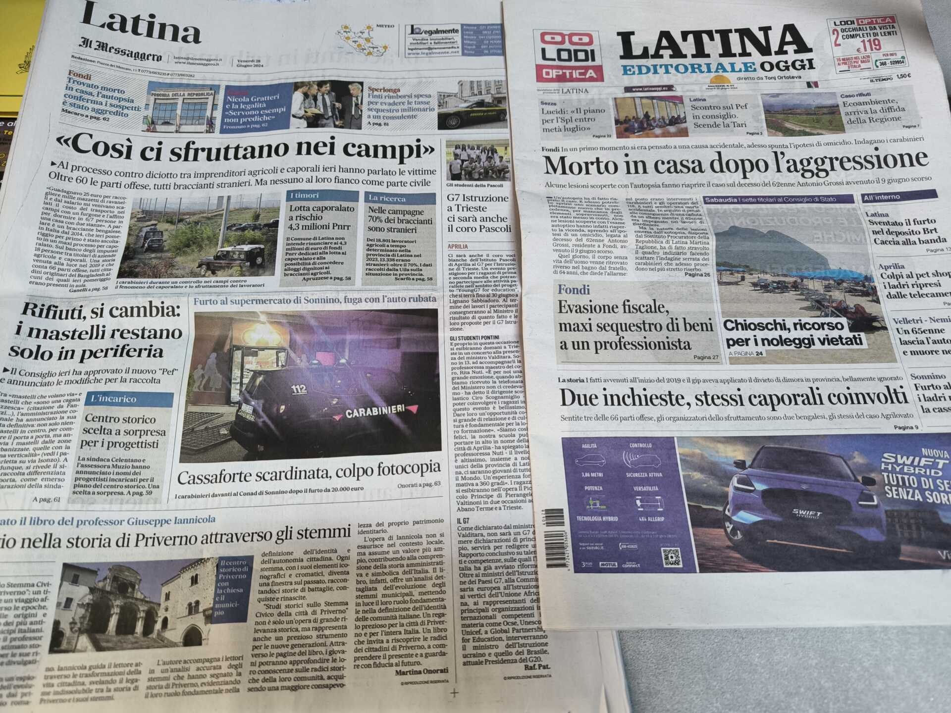 I quotidiani di Latina in un click – 28 giugno 2024