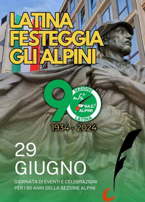 LATINA – Latina festeggia il 90° della sezione Alpini, il 29 giugno, con una giornata di eventi. Si comincerà alle 9,30 con l’ammassamento in Piazza del Popolo di fronte alla Torre comunale in attesa dell’uscita del gonfalone del Comune e del vessillo dell’Ana sezionale cui saranno poi resi gli onori. A seguire la sfilata da Piazza del Popolo fino a Piazza Dante e l’alzabandiera in Piazza Dante presso il monumento donato dalla città di Treviso alla città di Latina. Quindi, il trasferimento al monumento all’Alpino con la deposizione di una corona in ricordo di tutti gli alpini “andati avanti”. La giornata proseguirà alle 11 con la messa nella cattedrale di San Marco officiata dal vescovo Mariano Crociata.