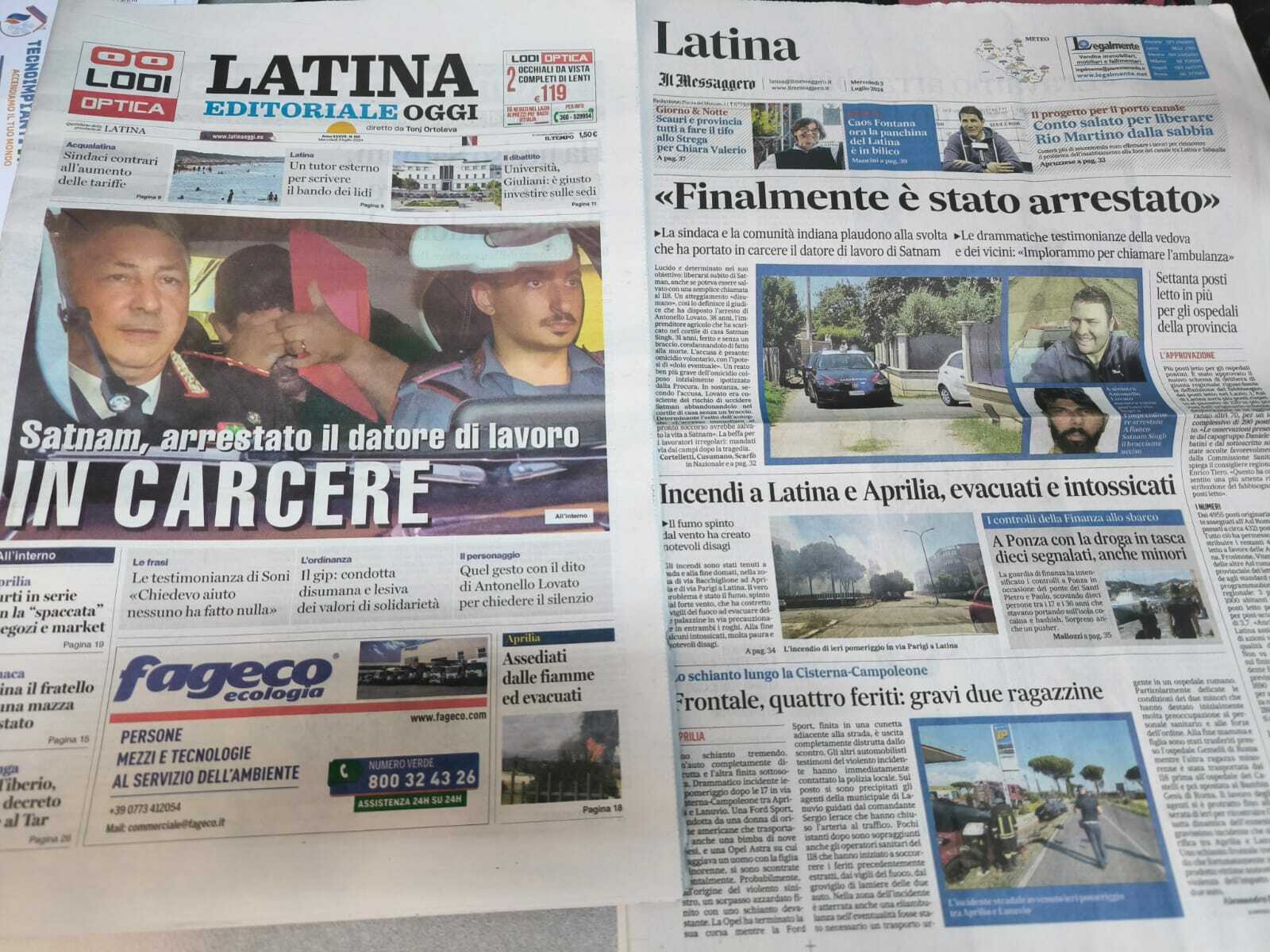 I quotidiani di Latina in un click – 3 luglio 2024