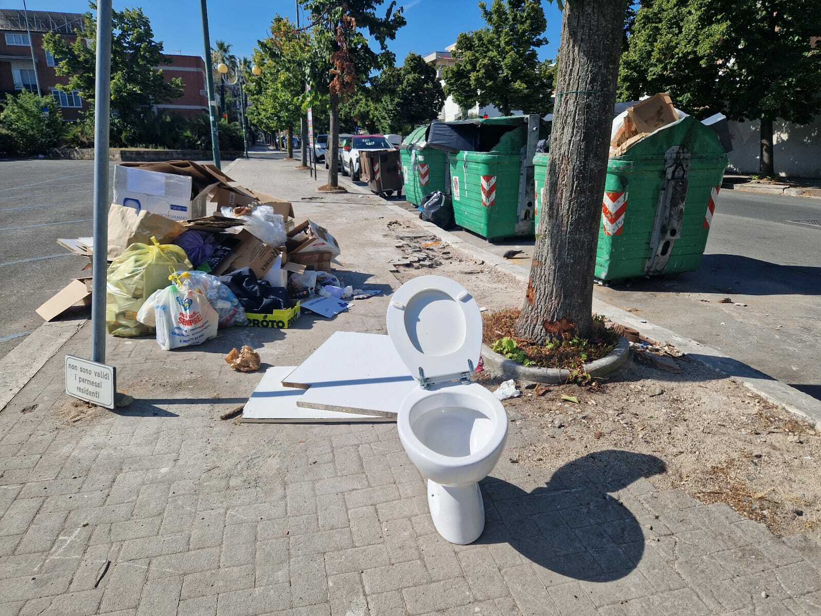 LATINA – Da tre giorni, i residenti di Via Verdi e i tantissimi che transitano nella zona del quartiere Isonzo, sono costretti a vedere un water accanto ai secchi della spazzatura. Era stato lasciato al lato del cassonetto dell’umido, ora si trova al centro del marciapiede con la tavoletta alzata. Forse spostato per suscitare ilarità? Non fa ridere, però. E’ il segnale di una città che scivola verso il basso, alla quale troppi cittadini evidentemente non vogliono bene. E molto di più si potrebbe fare per limitare i danni all’immagine e al decoro creati da un (vecchio) sistema di raccolta dei rifiuti che non funziona e che lascia chiunque libero di abbandonare per strada sacchi, mobili, materassi. E anche i gabinetti.