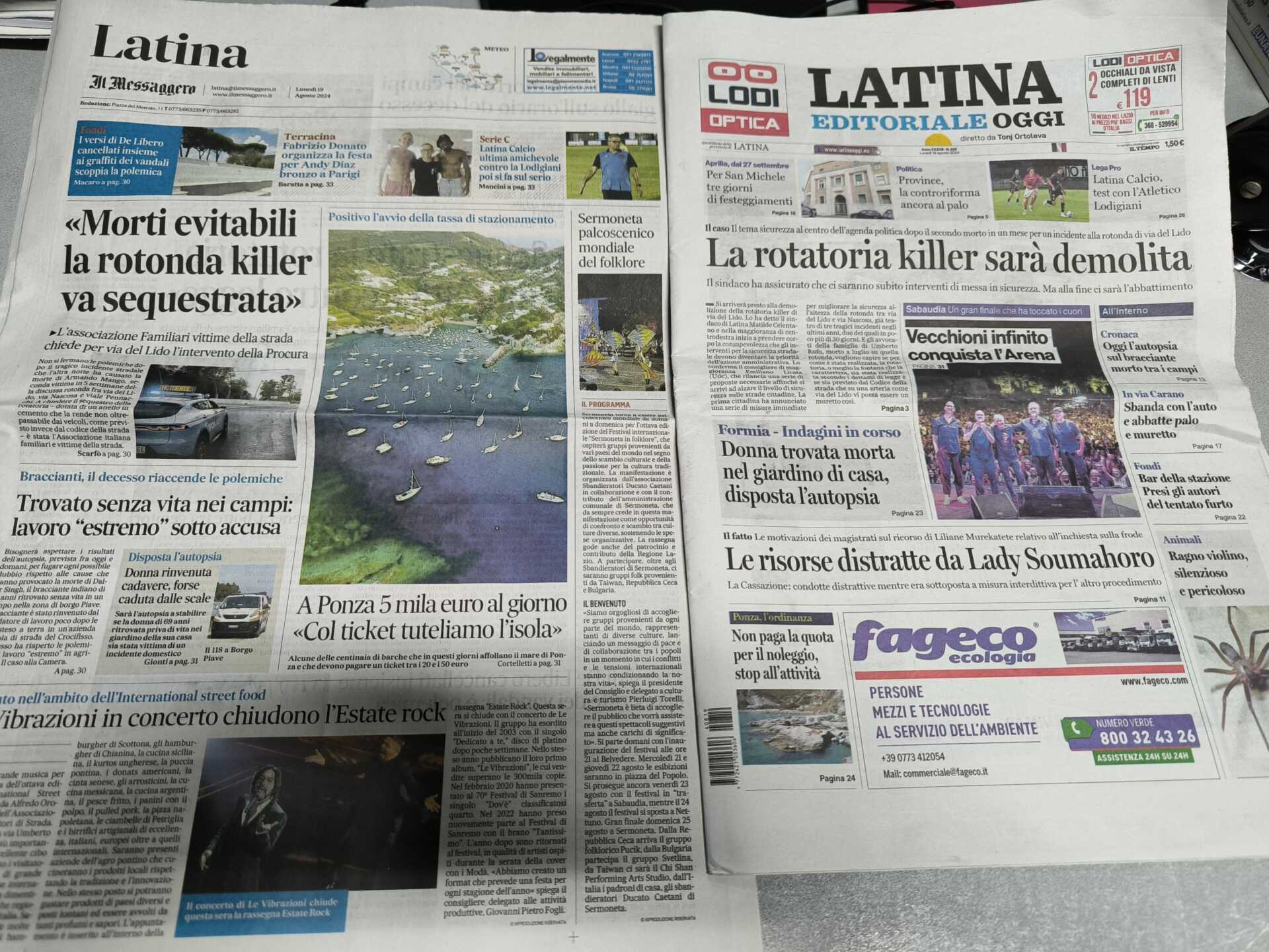 I quotidiani di Latina in un click – 19 agosto 2024