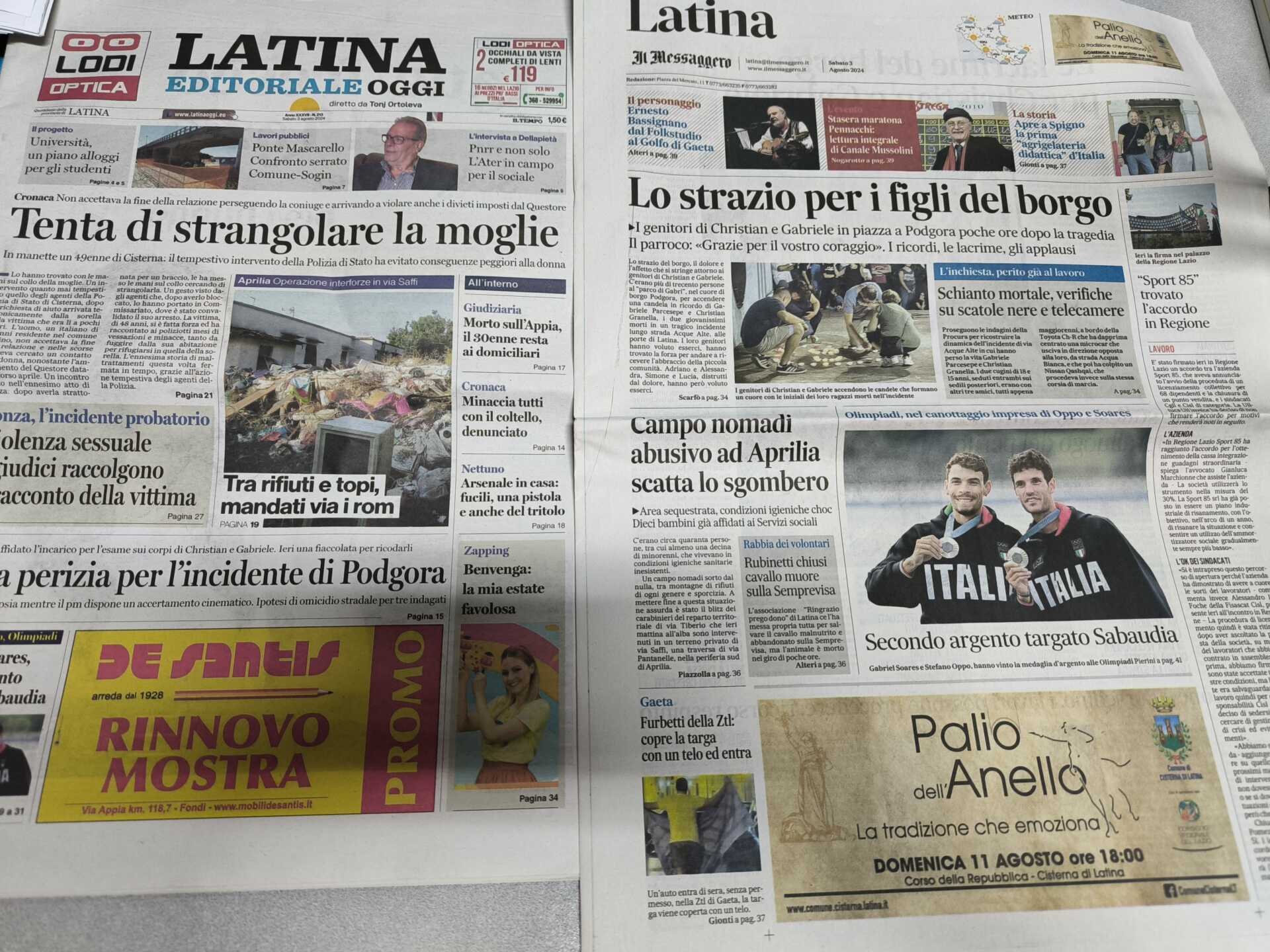 I quotidiani di Latina in un click – 3 agosto 2024