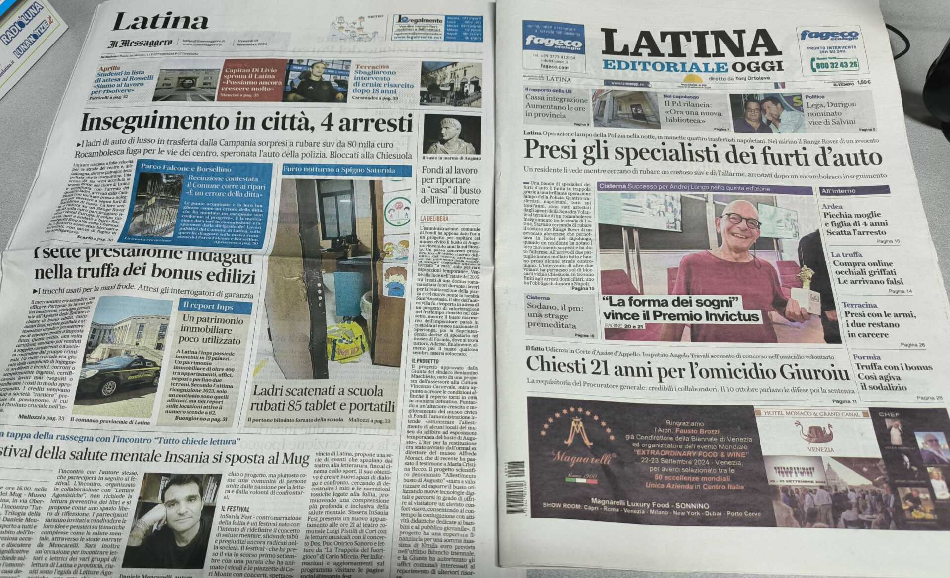 LATINA – Qui trovate Prima Pagina, in un file audio di pochi minuti, i titoli di Latina Editoriale Oggi e del Messaggero Latina