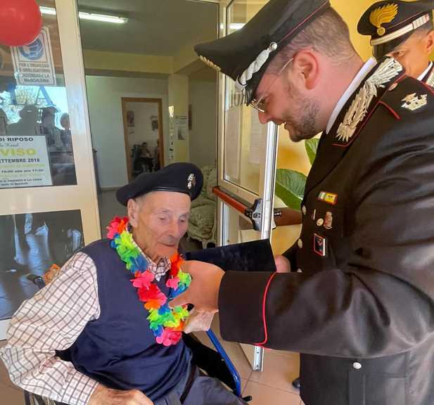 Sezze, compie 101 anni, l’omaggio dei Carabinieri al veterano dell’Arma Nicola Sbattella