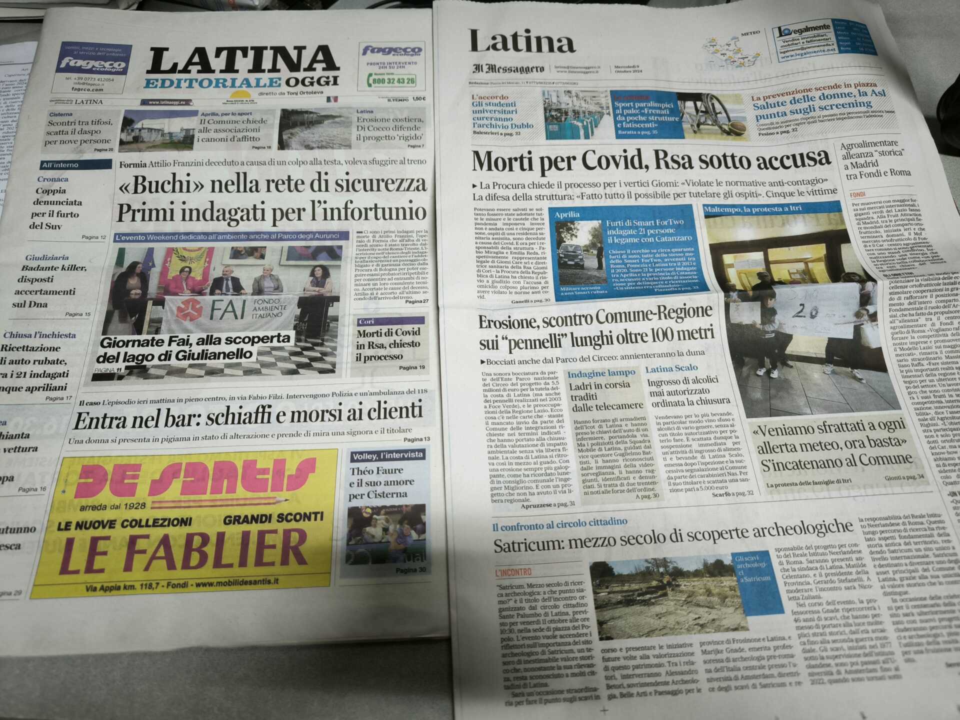 I quotidiani di Latina in un click – 9 ottobre 2024