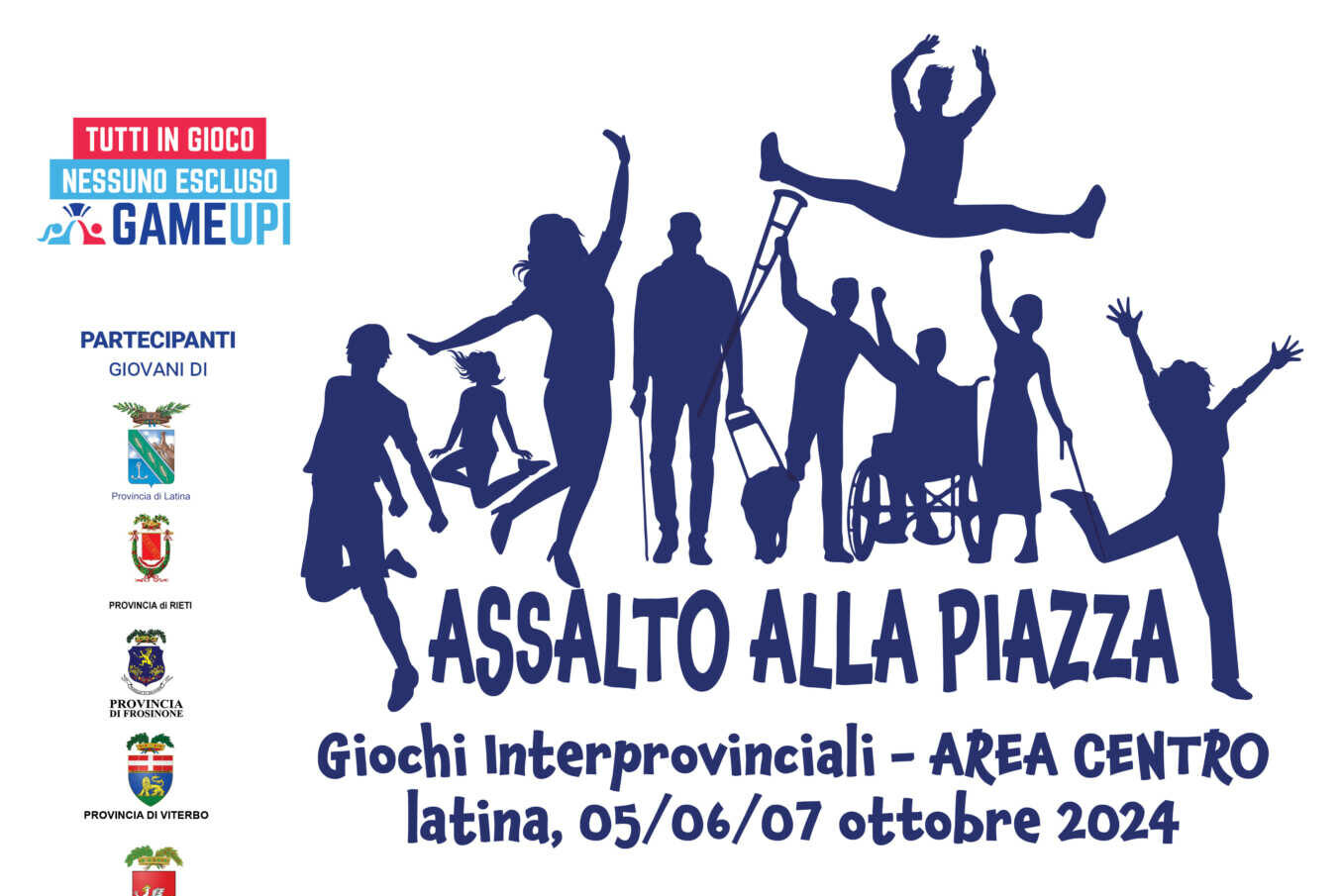 La seconda giornata sarà completamente dedicata ai giochi interprovinciali con “Assalto alla Piazza”, che vedrà il centro di Latina animarsi grazie alle prove divertenti e bizzarre che vedranno sfidarsi le squadre nei GIOCHI SENZA FRONTIERE. Orienteering, soluzioni di enigmi, abilità sportive e caccia al tesoro saranno alla base delle sfide che coinvolgeranno le squadre, espressione di ogni Provincia partecipante, in percorsi “a sorpresa” disegnati nella città.