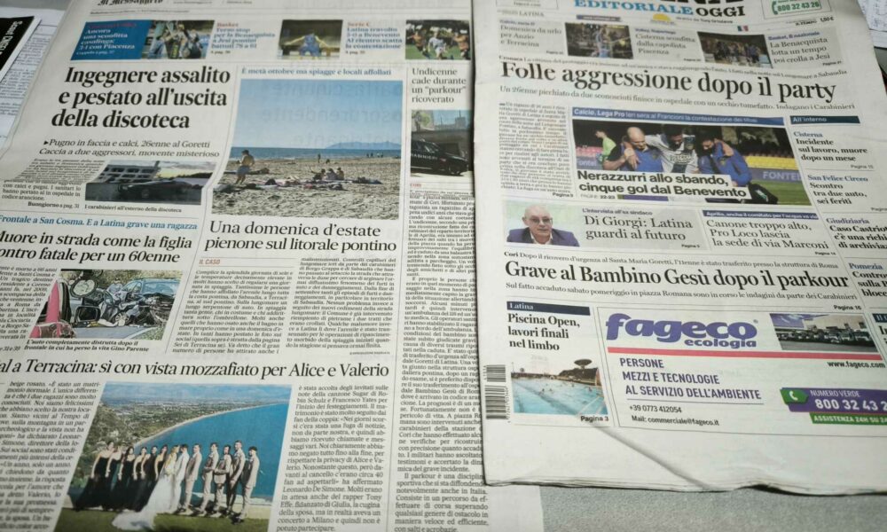 LATINA – Qui trovate Prima Pagina, in un file audio di pochi minuti, i titoli di Latina Editoriale Oggi e del Messaggero Latina. ASCOLTA