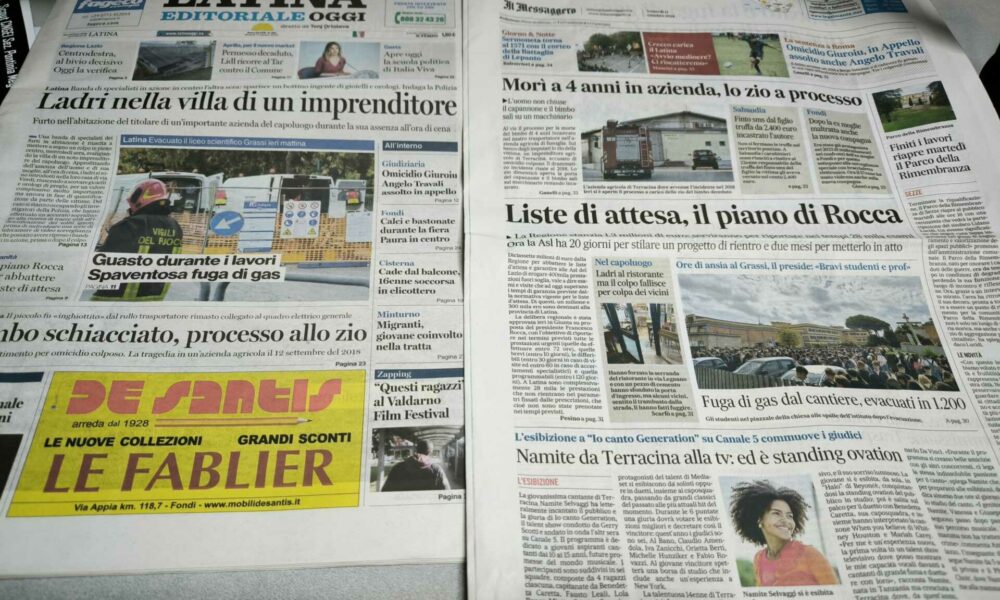 LATINA – Qui trovate Prima Pagina, in un file audio di pochi minuti, i titoli di Latina Editoriale Oggi e del Messaggero Latina. ASCOLTA