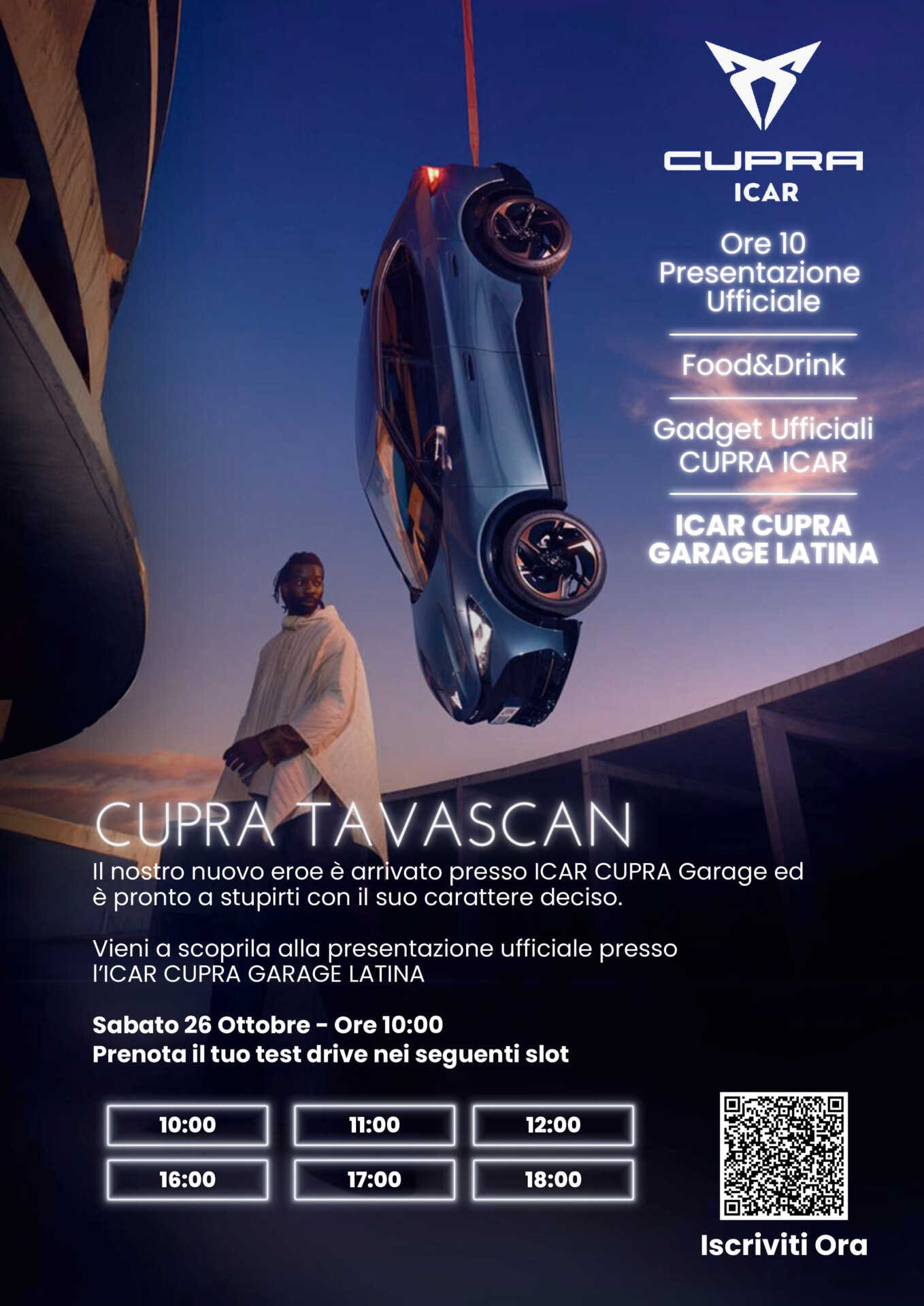 Questa doppia opportunità rappresenta un momento imperdibile per conoscere la visione innovativa di CUPRA, che unisce audacia, tecnologia all’avanguardia e performance. La CUPRA Tavascan è il simbolo di una nuova era per il marchio, e il week-end del 26 e 27 ottobre sarà l’occasione ideale per immergersi nel futuro della mobilità elettrica.