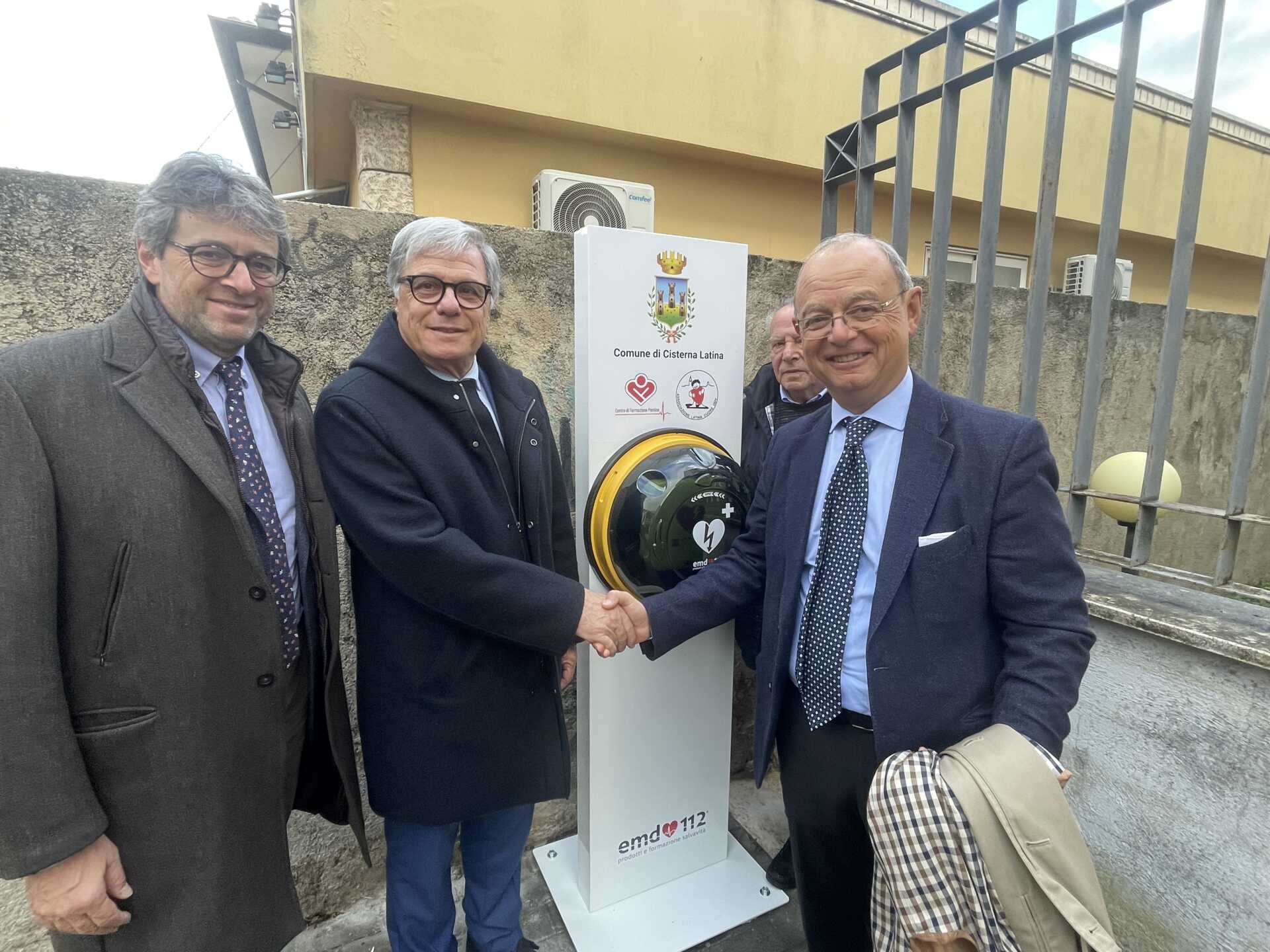 All’inaugurazione erano presenti con il Sindaco di Cisterna Valentino Mantini e l’amministrazione comunale, il Direttore Sanitario della ASL di Latina Sergio Parrocchia in rappresentanza della commissaria straordinaria della ASL di Latina Sabrina Cenciarelli, il prof. Francesco Versaci, responsabile del Reparto UOC Cardiologia, UTIC ed Emodinamica dell’ospedale Santa Maria Goretti di Latina, il direttore del Distretto sociosanitario LT1 Vincenzo Lucarini e il presidente di Latina cuore ODV Giovanni Stivali.