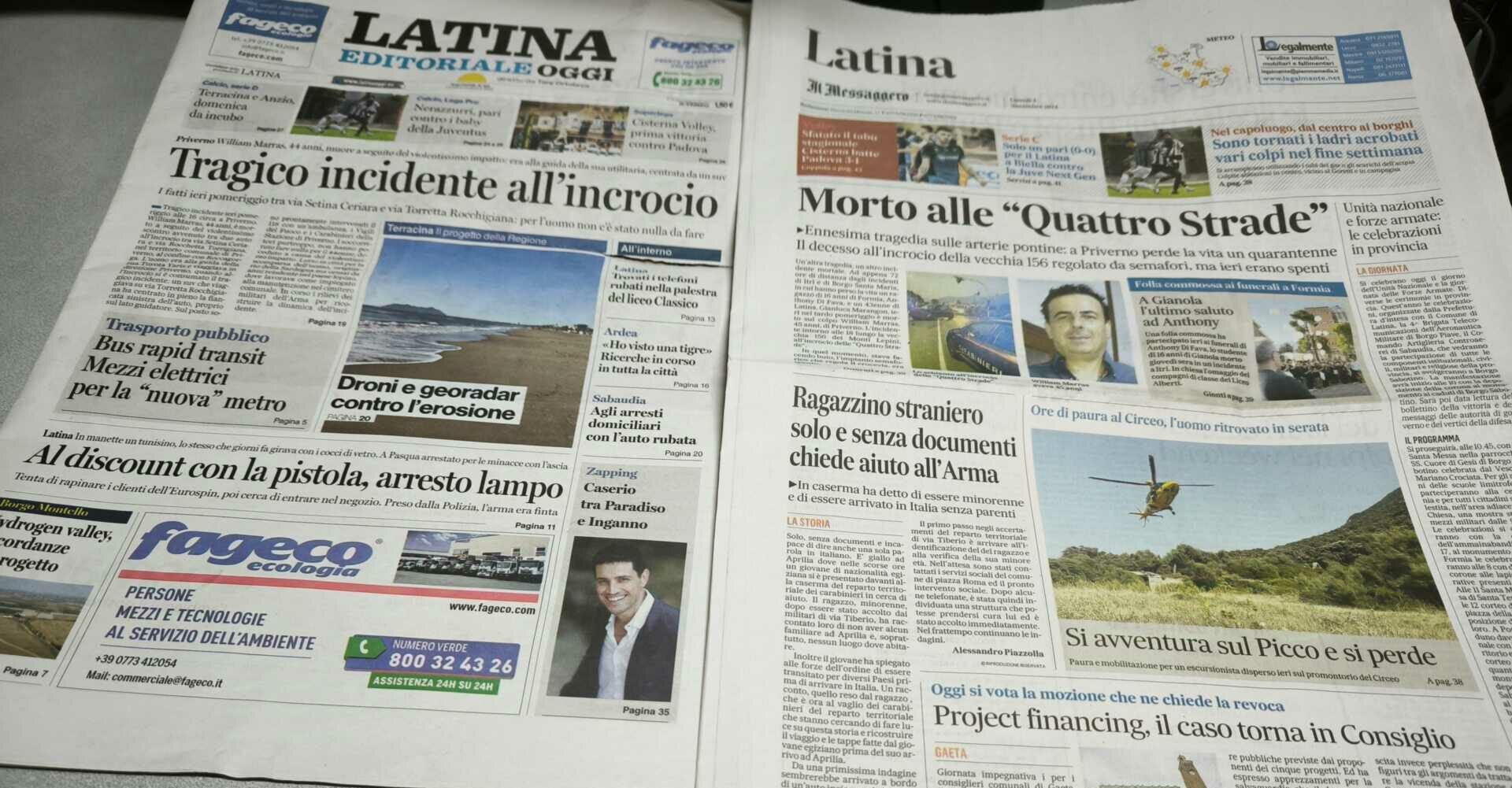 LATINA – Qui trovate Prima Pagina, in un file audio di pochi minuti, i titoli di Latina Editoriale Oggi e del Messaggero Latina