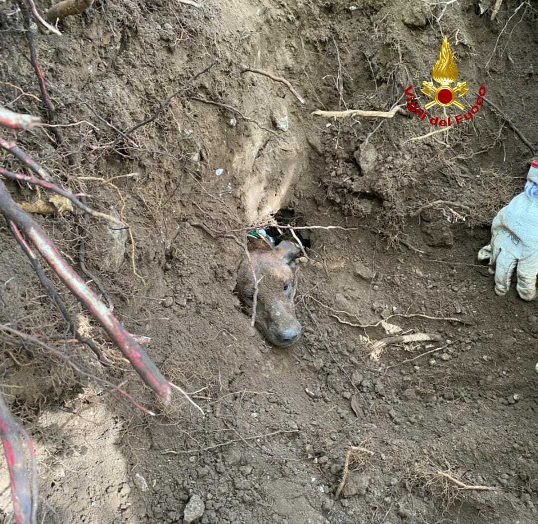 Intrappolato in una cavità naturale, il cane “Fulmine” liberato dai vigili del fuoco