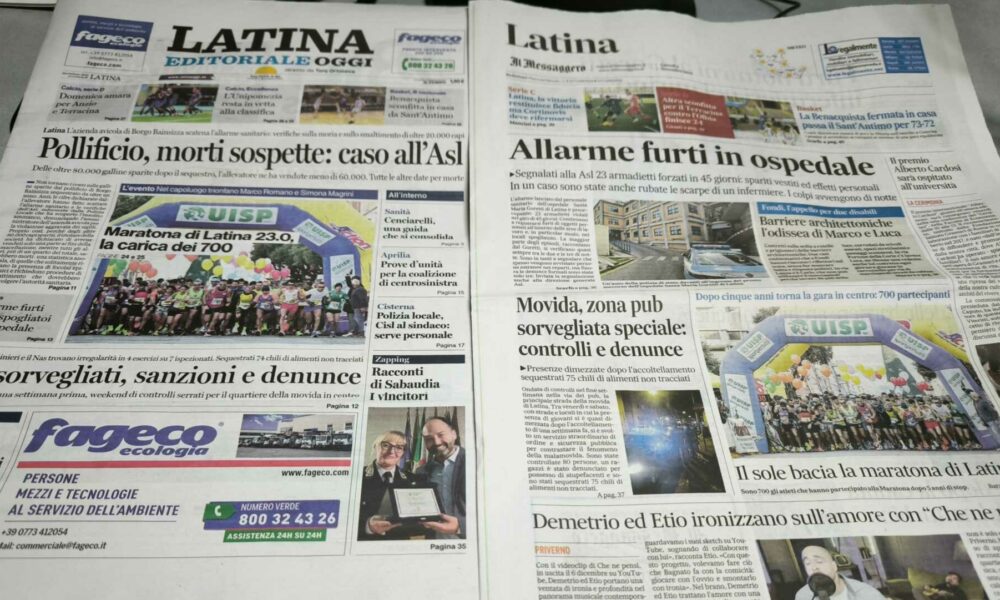LATINA – Qui trovate Prima Pagina, in un file audio di pochi minuti, i titoli di Latina Editoriale Oggi e del Messaggero Latina. ASCOLTA ...
