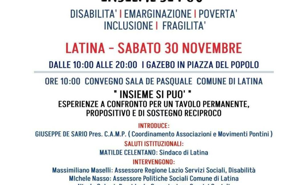 LATINA – Volontari e associazioni saranno in piazza oggi a Latina. Dopo l’evento a Piazza Moro del 20 ottobre, con il quale sono state raccolte centinaia...