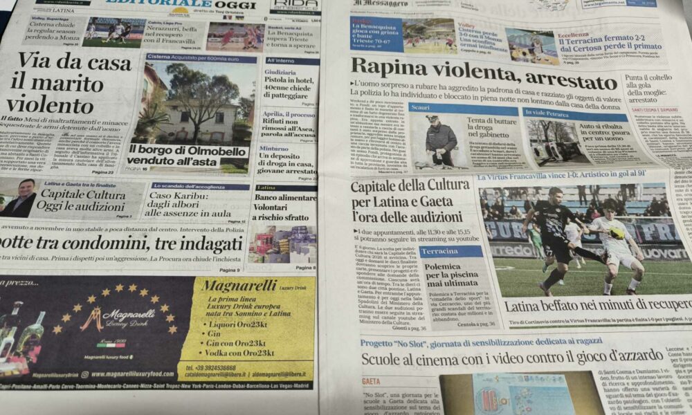 LATINA – Qui trovate Prima Pagina, ora solo in versione web, in un file audio di pochi minuti i titoli di Latina Editoriale Oggi e del...