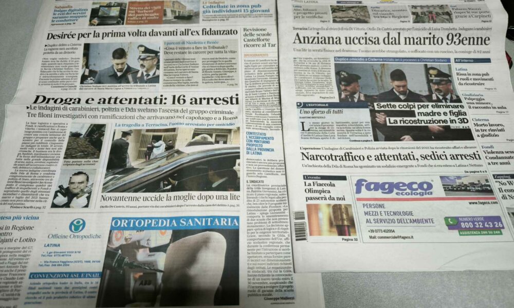 LATINA – Qui trovate Prima Pagina, in un file audio di pochi minuti, i titoli di Latina Editoriale Oggi e del Messaggero Latina. ASCOLTA ...