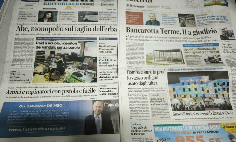LATINA – Qui trovate Prima Pagina, in un file audio di pochi minuti, i titoli di Latina Editoriale Oggi e del Messaggero Latina. ASCOLTA