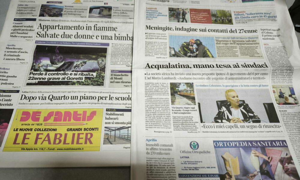 LATINA – Qui trovate Prima Pagina, in un file audio di pochi minuti, i titoli di Latina Editoriale Oggi e del Messaggero Latina. ASCOLTA