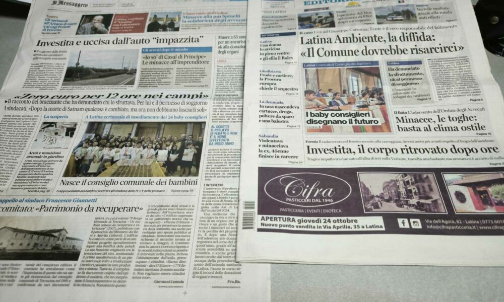 LATINA – Qui trovate Prima Pagina, in un file audio di pochi minuti, i titoli di Latina Editoriale Oggi e del Messaggero Latina. ASCOLTA