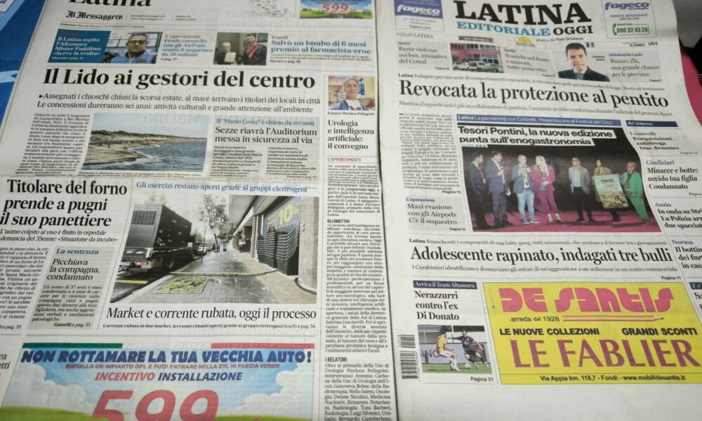 LATINA – Qui trovate Prima Pagina, in un file audio di pochi minuti, i titoli di Latina Editoriale Oggi e del Messaggero Latina. ASCOLTA
