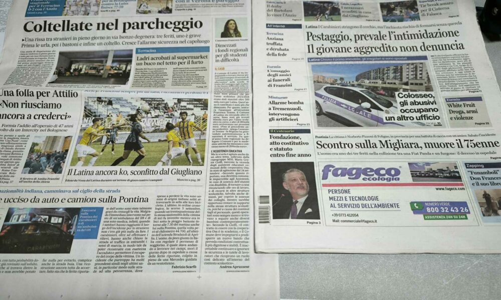 LATINA – Qui trovate Prima Pagina, in un file audio di pochi minuti, i titoli di Latina Editoriale Oggi e del Messaggero Latina. ASCOLTA