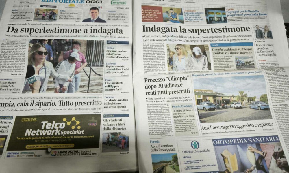 LATINA – Qui trovate Prima Pagina, in un file audio di pochi minuti, i titoli di Latina Editoriale Oggi e del Messaggero Latina. ASCOLTA