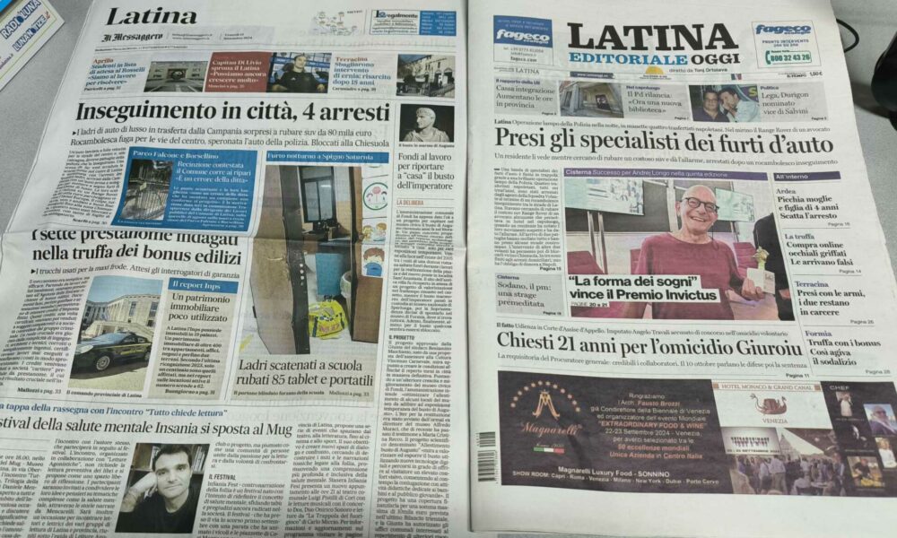 LATINA – Qui trovate Prima Pagina, in un file audio di pochi minuti, i titoli di Latina Editoriale Oggi e del Messaggero Latina. ASCOLTA