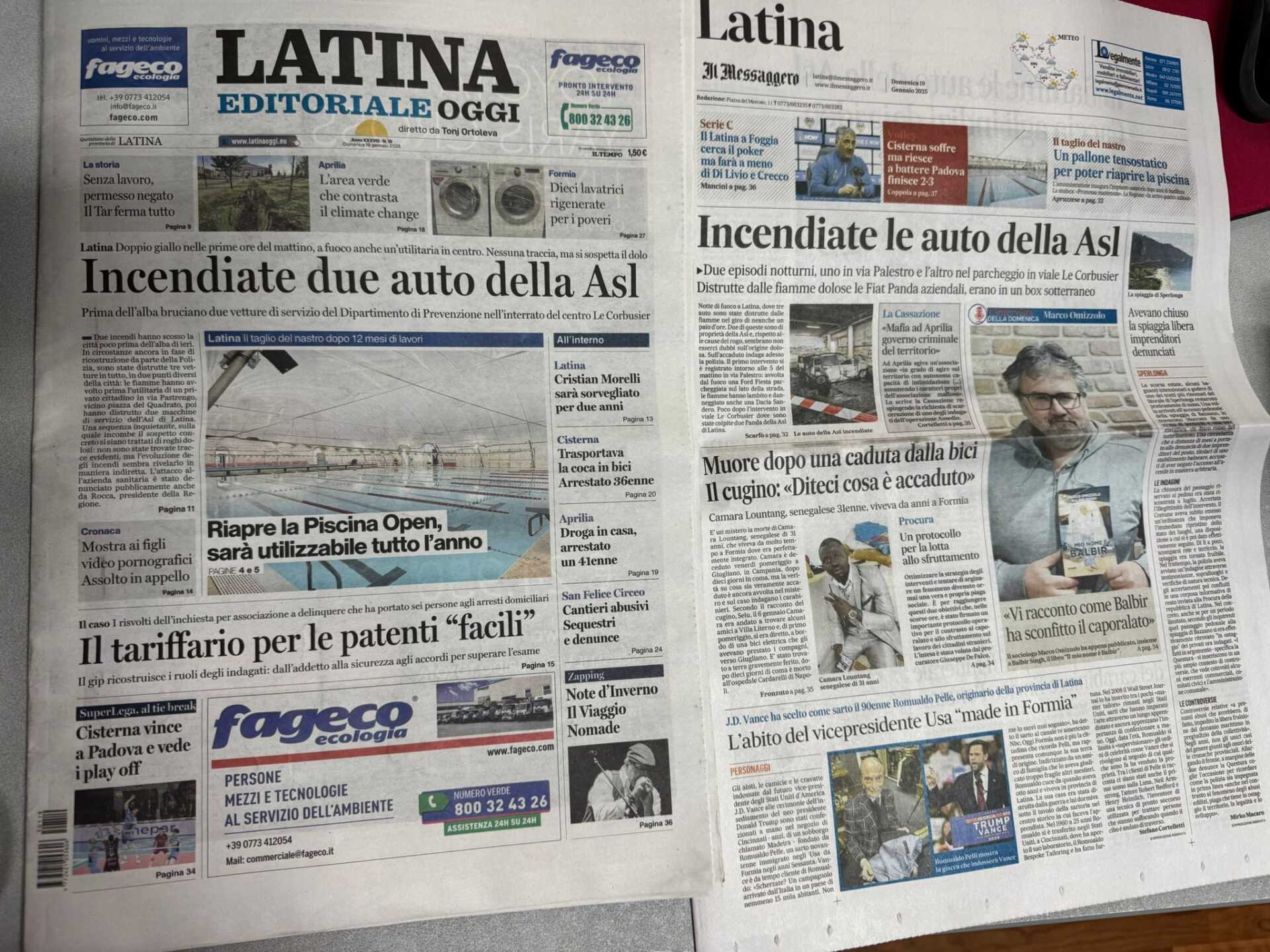 I quotidiani di Latina in un click – 19 gennaio 2025