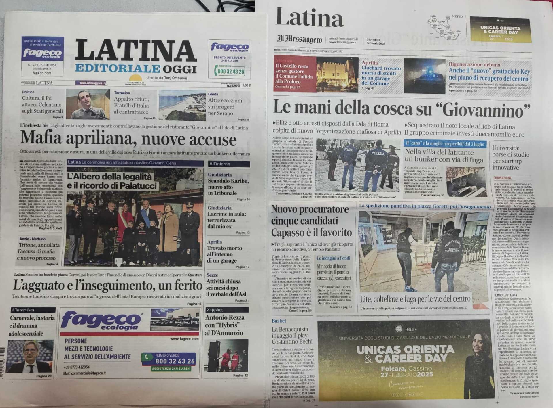 I quotidiani di Latina in un click – 13 febbraio 2025