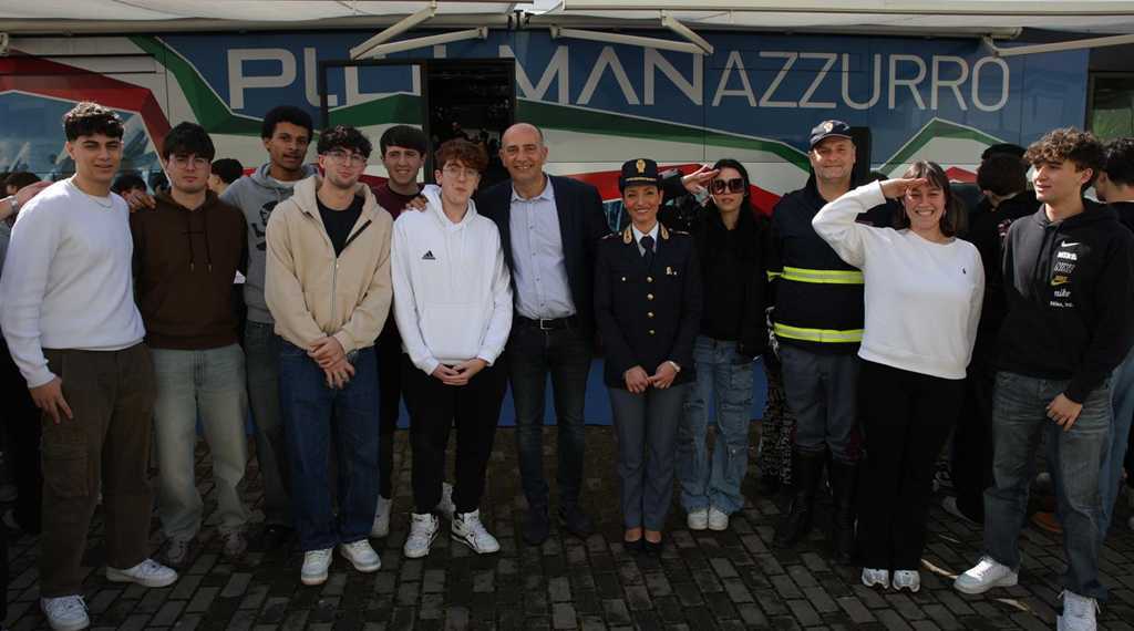 A chiudere la giornata, all’esterno del liceo gli studenti hanno trovato il pullman blu della Polizia Locale, che ha offerto un’esperienza di guida immersiva a tutti i partecipanti.