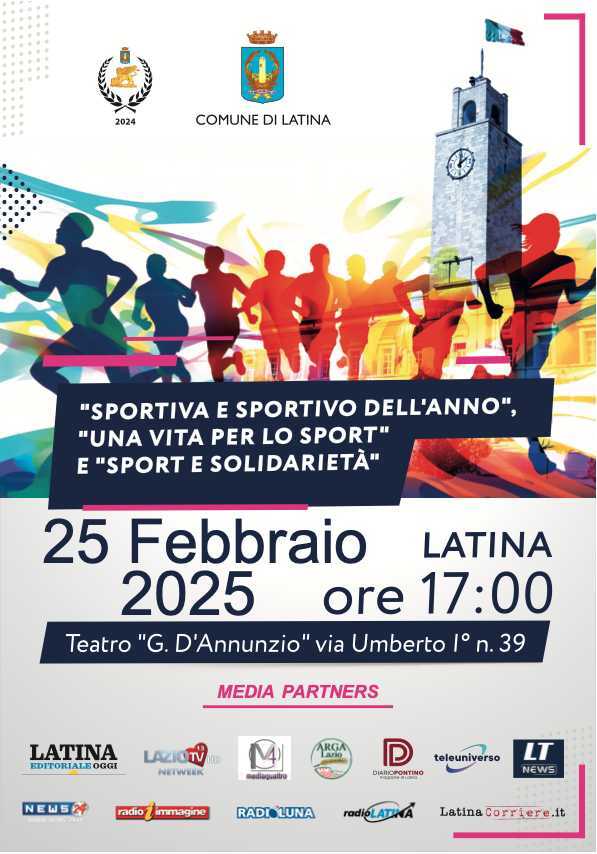 “La kermesse di quest’anno – continua l’assessore Chiarato – prevede una serie di novità di cui siamo orgogliosi. La prima è il coinvolgimento attivo delle testate giornalistiche presenti sul territorio. I giornalisti, che saliranno sul palco per le premiazioni, sono infatti anche loro testimoni dei successi degli sportivi. Li hanno conosciuti e seguiti nelle varie fasi culminate con i risultati ottenuti e, per questo, abbiamo fortemente voluto la loro presenza il 25 febbraio. La serata, inoltre, sarà centrata sui 10 premiati che conosceremo e potremo apprezzare tutti per la loro caparbietà che li ha portati a raggiungere il massimo. Ringrazio tutti coloro che stanno lavorando alla riuscita della kermesse sportiva: gli uffici, il delegato del sindaco Alessandro Marfisi, la commissione giudicatrice, la commissione Sport presieduta da Claudio Di Matteo e Bianca Francavilla, che sarà la presentatrice della serata. Questo evento, a cui l’amministrazione tiene in modo particolare, è solo il primo di una serie di appuntamenti in vista del 26 dicembre 2025, quando Latina ospiterà la fiaccola olimpica per i Giochi Olimpici Invernali di Milano-Cortina 2026”.