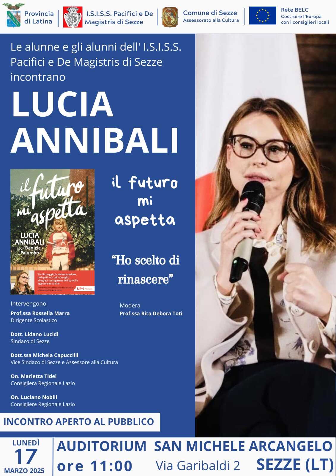 LATINA – Lunedì 17 marzo alle ore 11, presso l’auditorium comunale San Michele Arcangelo di Sezze, Lucia Annibali incontrerà gli studenti dell’ISISS Pacifici e De Magistris. “No all’amore tossico, libere di scegliere” questo il monito della Dirigente Scolastica Rossella Marra, annunciando con orgoglio l’incontro con l’autrice del libro “Il futuro mi aspetta, ho scelto di rinascere”. Lucia Annibali fu vittima di un’atroce violenza, dodici anni fa due persone assoldate dall’ex fidanzato le sfregiarono il viso con l’uso dell’acido. Da quel giorno terribile decine di operazioni al viso, un faticoso percorso personale ma anche la forza e il desiderio di condividere quell’esperienza e trasformarla in un messaggio alle nuove generazioni contro le violenze di genere e ai legami con relazioni tossiche.