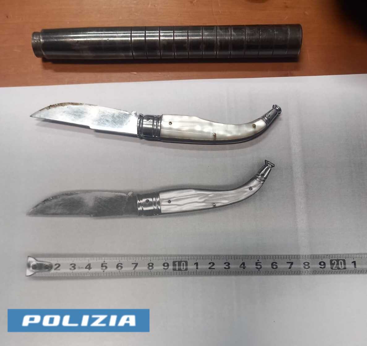 Durante le consuete attività di pattugliamento nelle zone maggiormente frequentate nei fine settimana, i poliziotti hanno notato due ragazzi muoversi con atteggiamento sospetto nei pressi di un parcheggio. A seguito di un controllo approfondito, è emerso che uno dei due, maggiorenne, era in possesso di 9 grammi di hashish suddivisi in dosi, un bilancino di precisione e materiale per il confezionamento. Il secondo, un minorenne, portava con sé un coltello con lama di circa 8 centimetri e uno sfollagente metallico estensibile.