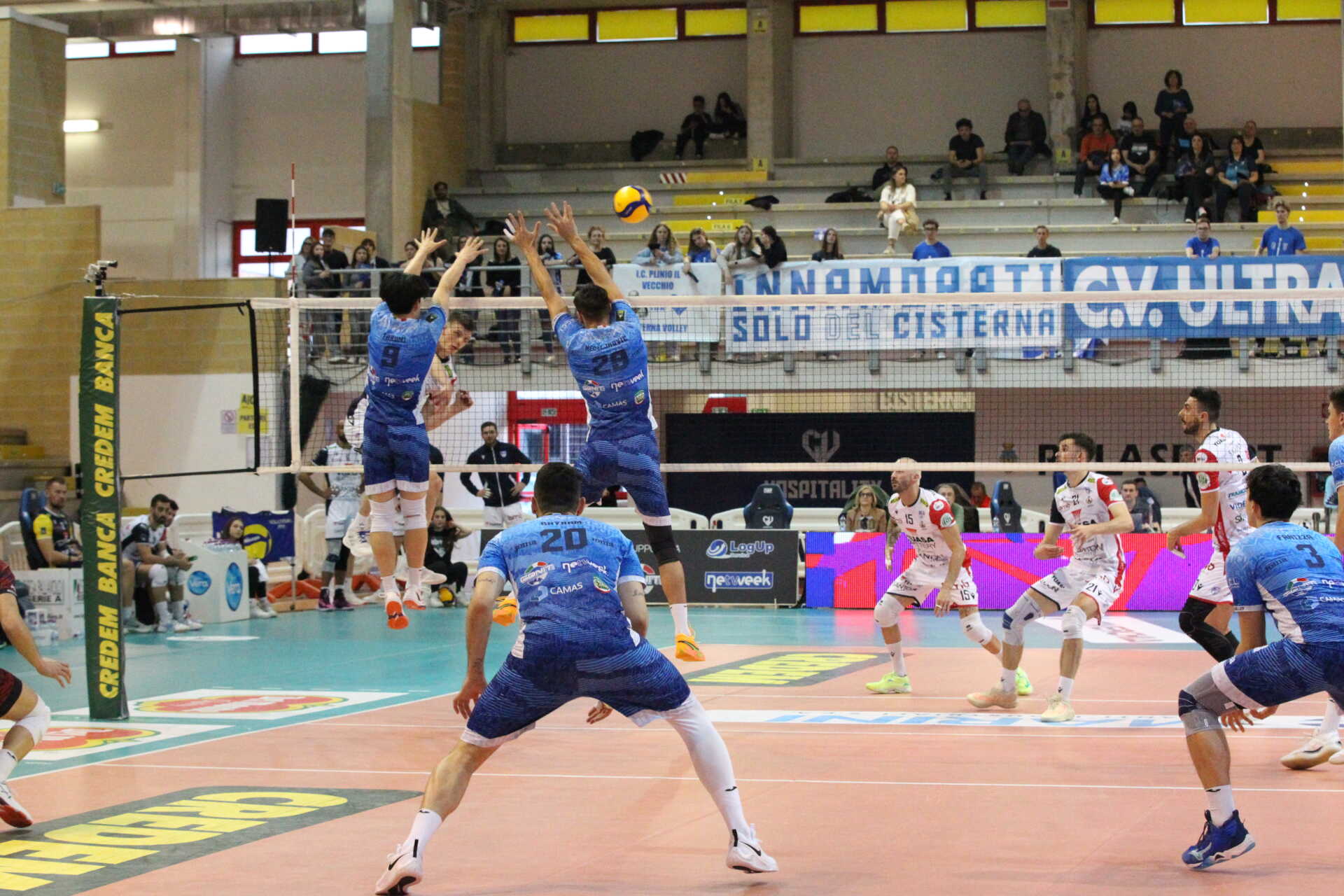 CISTERNA DI LATINA – Il Cisterna Volley inizia con una vittoria il percorso ai gironi dei Playoff quinto posto, superando in tre set la Yuasa Battery Grottazzolina. In una giornata dove si esaltano Nedeljkovic e Tarumi, c’è spazio tra le fila di casa per vedere in campo i giovani Finauri e Fanizza, oltre che alla gioia per l’esordio del classe 2008 Jacopo Tosti, entrato nel secondo set al posto di Mazzone e autore del punto che ha chiuso la partita. I marchigiani sbagliano molto, favorendo la fuga nei tre parziali da parte dei ragazzi di coach Falasca, con Antonov tra i pochi a brillare con 8 punti. Per il Cisterna Volley il prossimo impegno in campionato sarà contro Rana Verona per dare continuità al primo successo del girone.