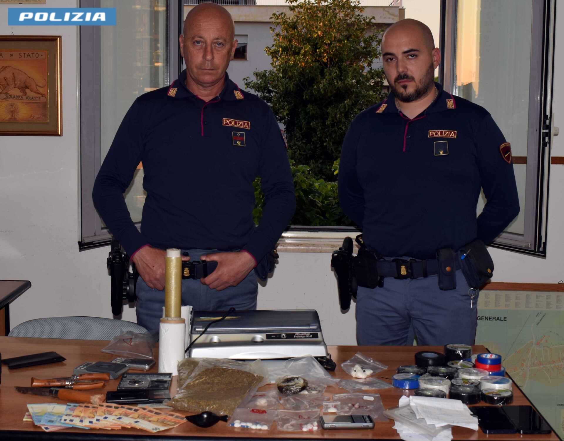 Dopo vari servizi di osservazione e controlli ai possibili acquirenti, con recuperi della sostanza appena acquistata, hanno dato il via alle attività di perquisizione domiciliare degli appartamenti dentro cui gli agenti, intervenuti con una unità cinofila antidroga, hanno rinvenuto cocaina, crack, hashish e marijuana, già confezionate in dosi, presumibilmente pronte per la vendita al dettaglio, per un totale di circa 30 grammi di cocaina, 9 grammi di crack, 93 grammi di hashish e sacchetti di erba essiccata presumibilmente marijuana del peso complessivo di 258 grammi.