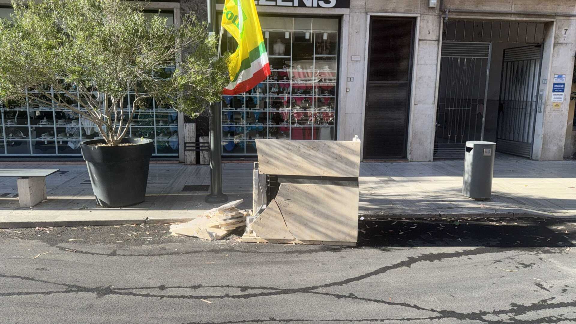 Latina, fatto a pezzi uno dei nuovi vasi in travertino nell’isola pedonale