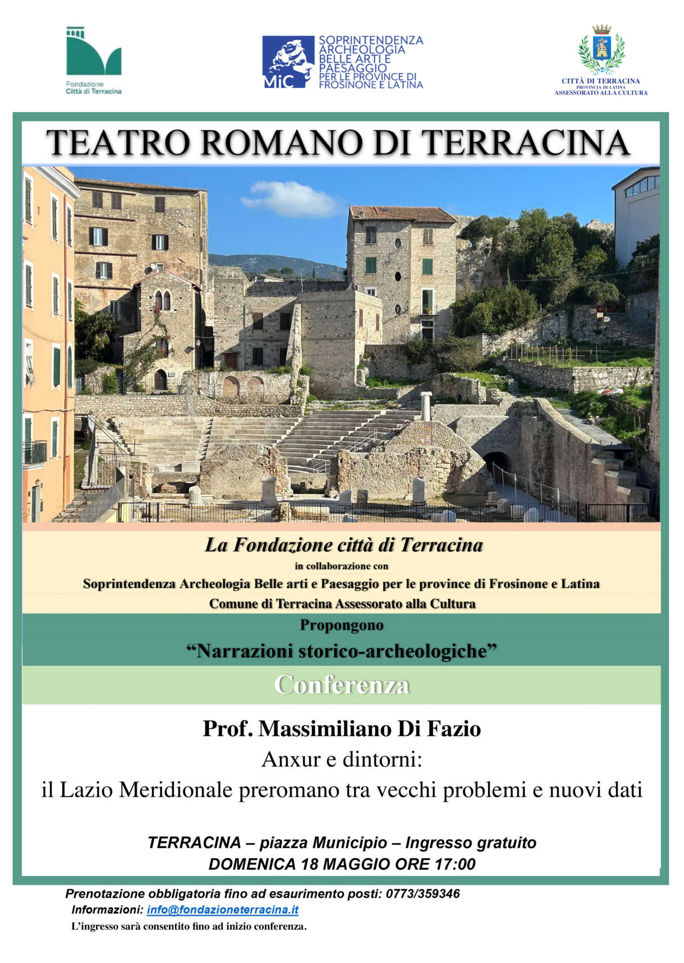 L’ingresso è libero, previa prenotazione obbligatoria (e-mail info@fondazioneterracina.it, tel. 0773/359346; cell. 335/1659813), e sarà consentito solo fino all’inizio della conferenza.