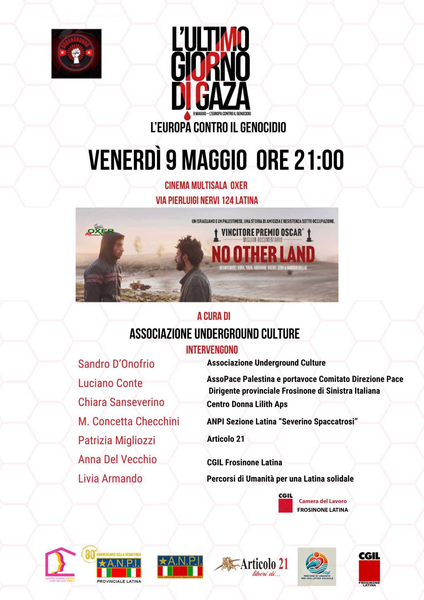 LATINA – Venerdì 9 maggio alle 21, presso il Cinema Multisala Oxer di Latina, l’Associazione culturale Underground Culture organizza la proiezione del documentario pluripremiato “No Other Land”, vincitore dell’Oscar come Miglior Documentario. Un lavoro diretto, prodotto, scritto e montato da un collettivo israelo-palestinese formato da Basel Adra, Yuval Abraham, Rachel Szor ed Hamdan Ballal. Una storia di amicizia e di resistenza la loro, da cui sono nati cinque anni di riprese per documentare, dal 2019 al 2023, gli sforzi di Basel Adra e di altri attivisti palestinesi di opporsi alla distruzione del loro villaggio natale di Masafer Yatta, situato nel governatorato di Hebron in Cisgiordania, da parte delle forze di difesa israeliane (IDF), per costruirci un poligono di tiro e zona d’addestramento militare.