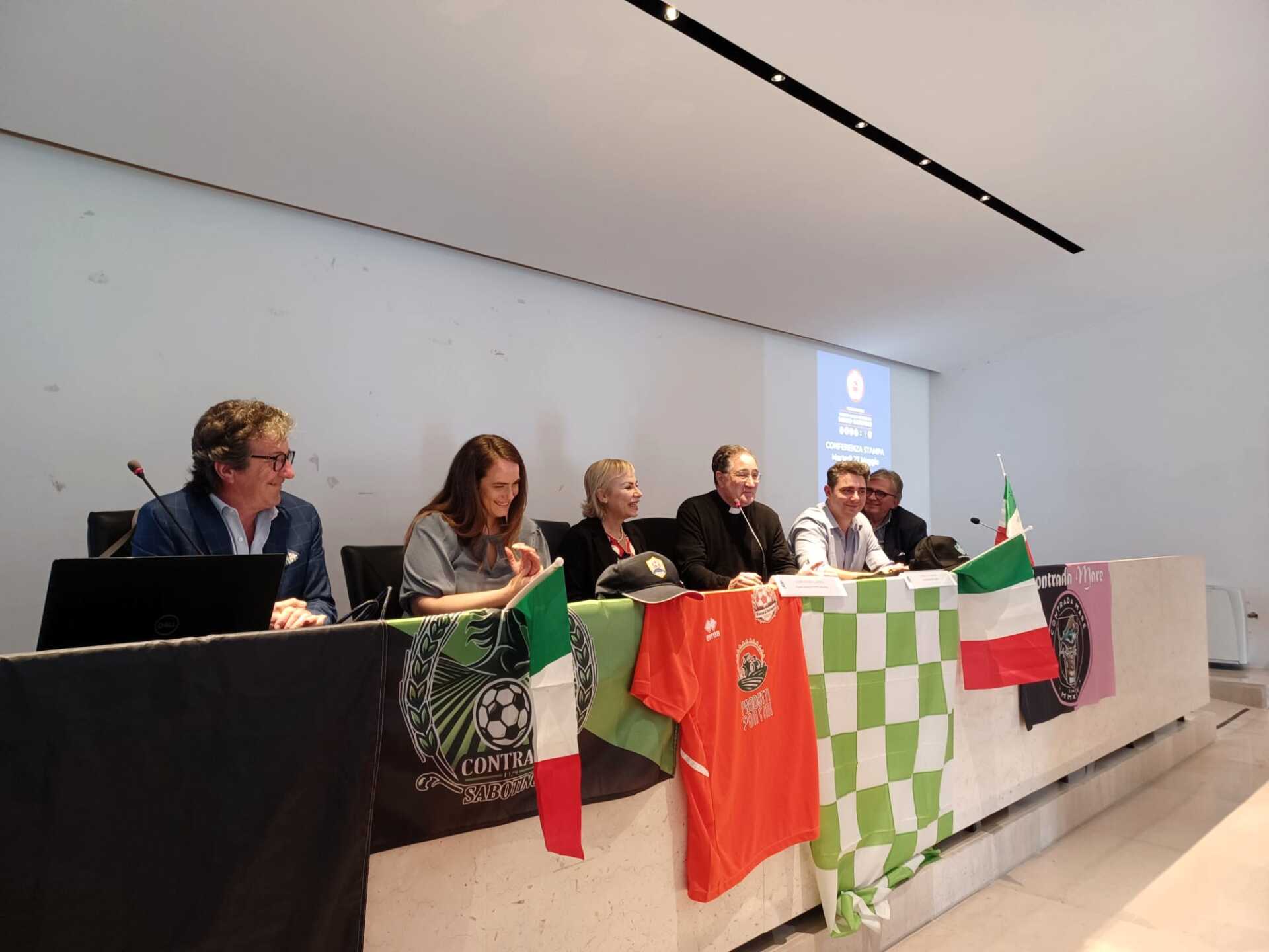 LATINA – Questa mattina, nella sala De Pasquale del Comune di Latina, si è tenuta la conferenza stampa di presentazione del Torneo delle contrade di Borgo Sabotino, che si svolgerà dal 31 maggio al 20 luglio presso il campo sportivo Andriollo in strada Sabotino, 35. E’ intervenuta la sindaca Matilde Celentano, l’assessore allo Sport Andrea Chiarato, Alessandra Garzon dell’associazione Eventi Sabotino, i consiglieri comunali Renzo Scalco e Fausto Furlanetto e il parroco Don Alberto della Chiesa S.S. Cuore di Gesù.