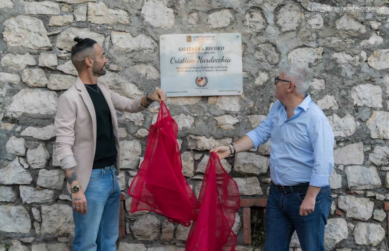 e il recordman Cristian Nardecchia. La notte bianca dello Sport è stata l’occasione per inaugurare la targa commemorativa per il record compiuto dallo stesso Cristian a settembre 2021 alla salita del Monticello.