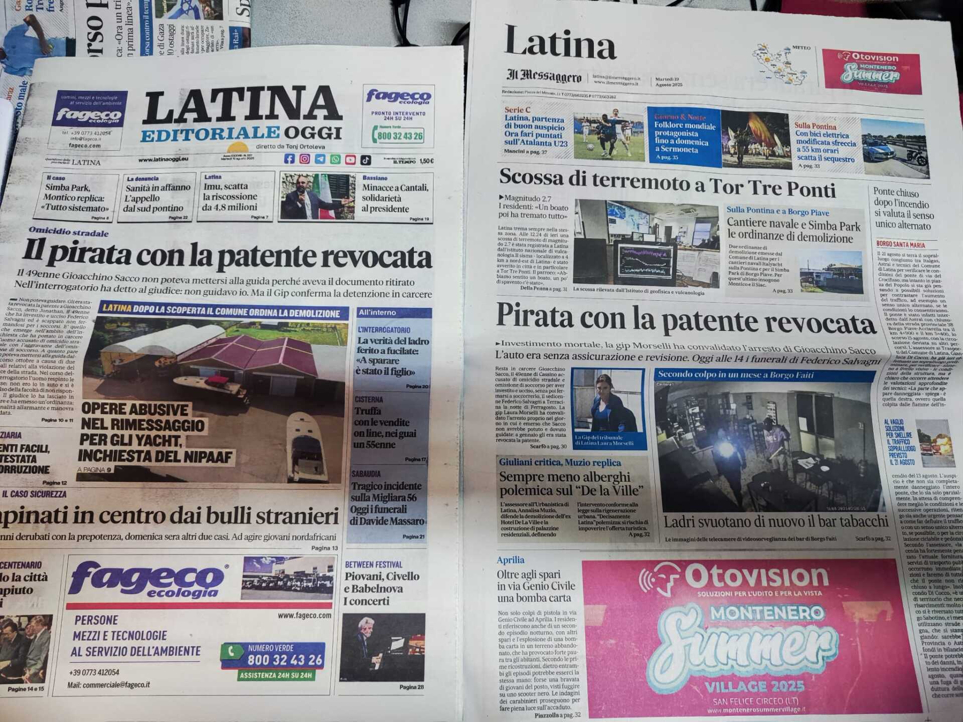 I quotidiani di Latina in un click – 19 agosto 2025
