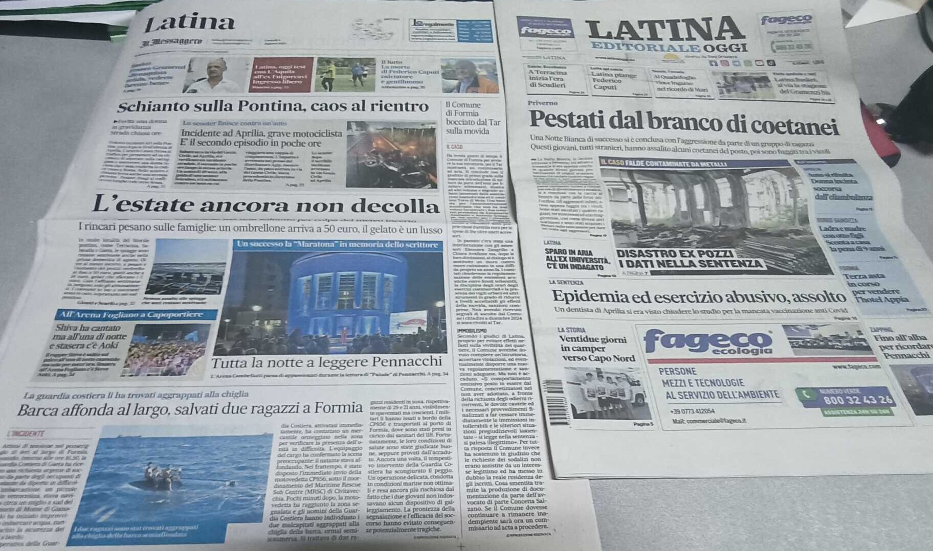 I quotidiani di Latina in un click – 4 agosto 2025