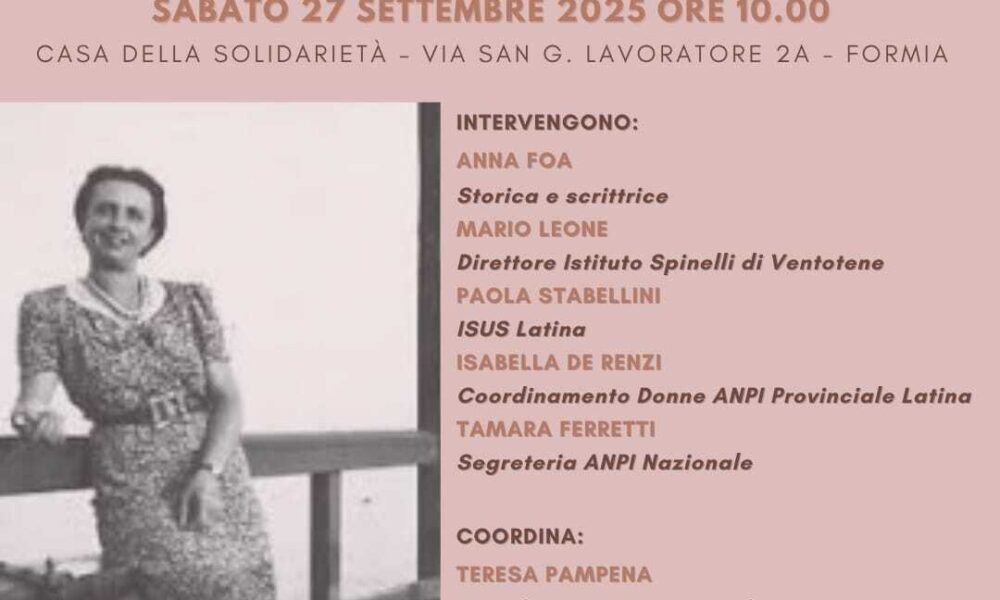 FORMIA – L’ANPI Provinciale di Latina e il suo Coordinamento Donne promuovono una significativa iniziativa pubblica che si svolgerà sabato 27 settembre alle ore 10:00 presso la...