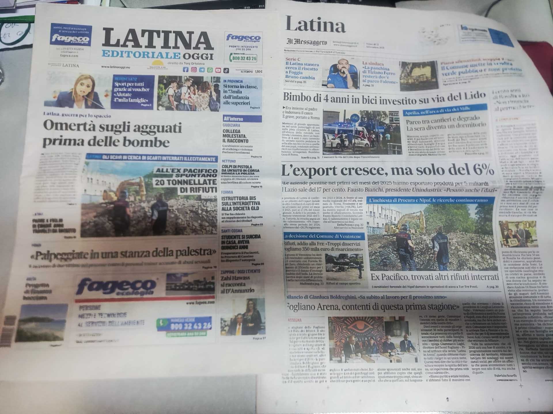 I quotidiani di Latina in un click – 12 settembre 2025