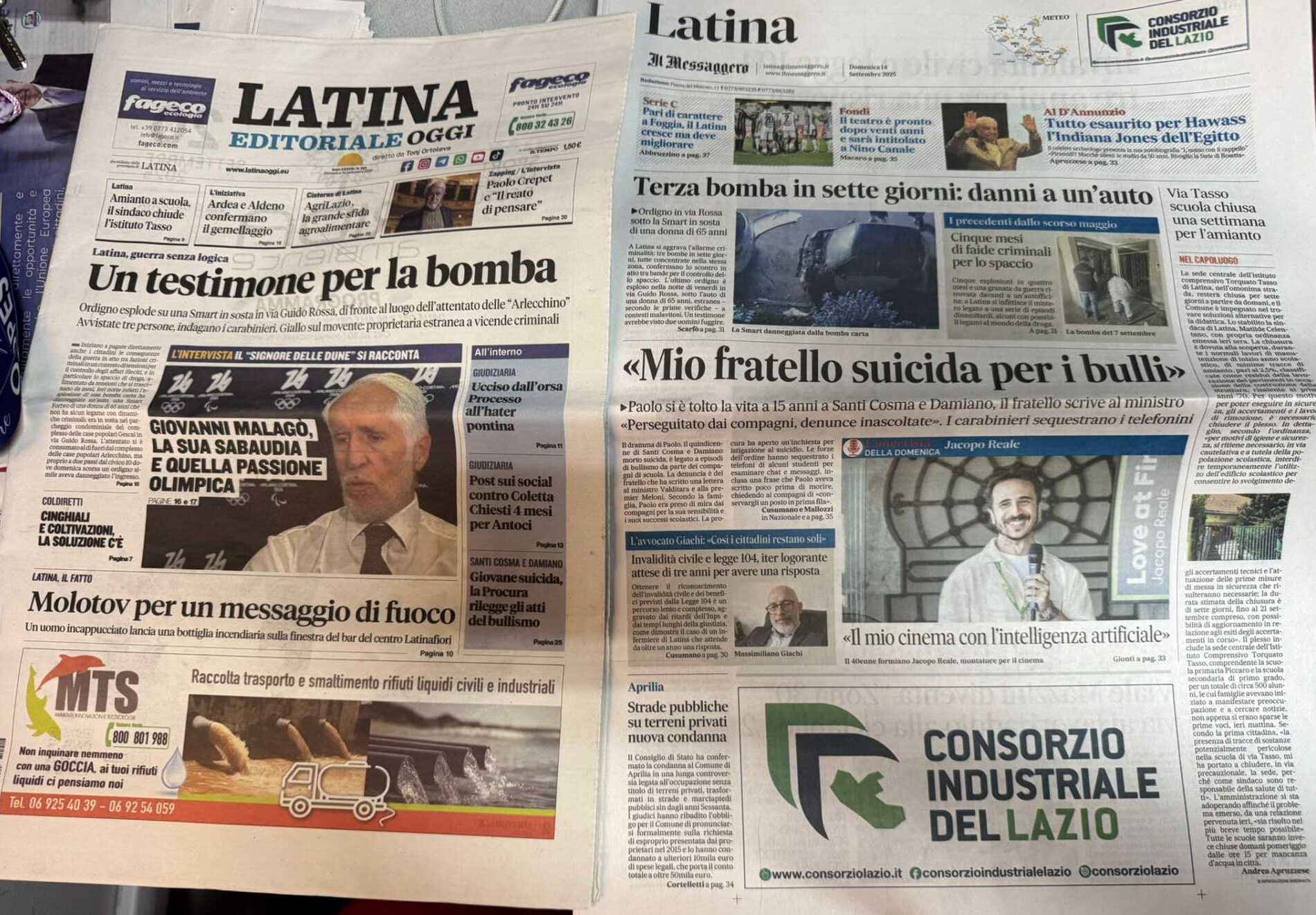 I quotidiani di Latina in un click – 14 settembre 2025