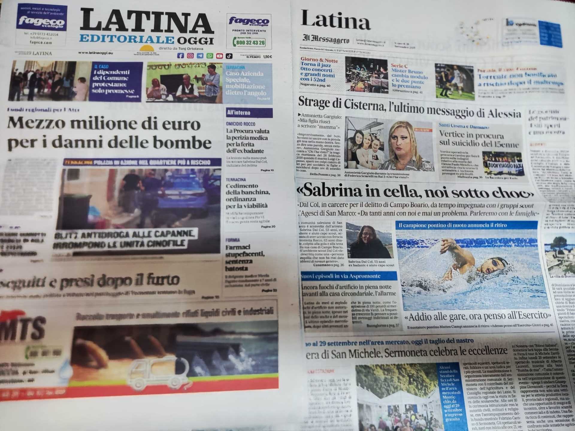 I quotidiani di Latina in un click – 26 settembre 2025