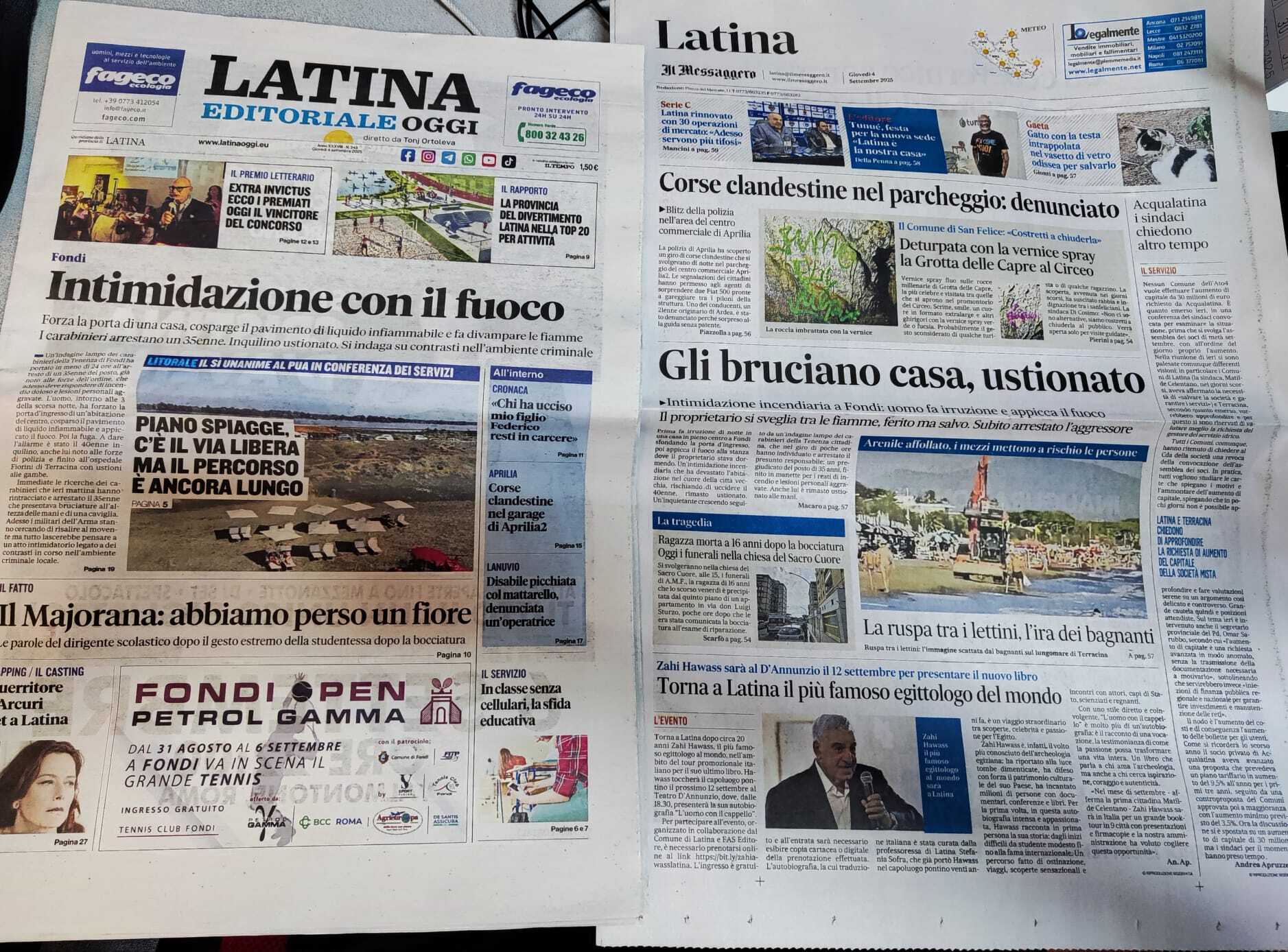 I quotidiani di Latina in un click – 4 settembre 2025
