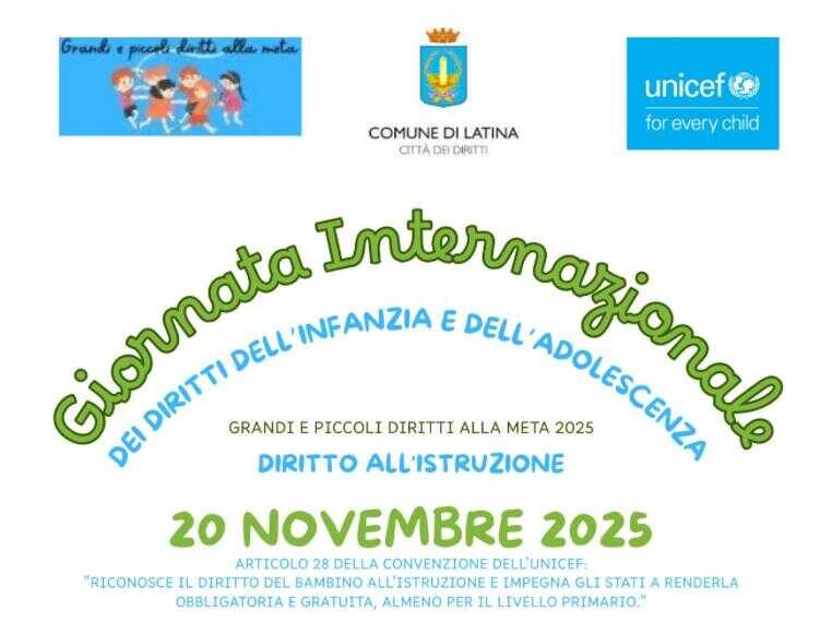 Nel pomeriggio del 20 novembre, inoltre, si terrà nell’aula consiliare del Comune di Latina un incontro pubblico, coordinato dalla consigliera comunale Francesca Pagano, con il Consiglio comunale delle bambine e dei bambini sul tema del diritto all’istruzione.