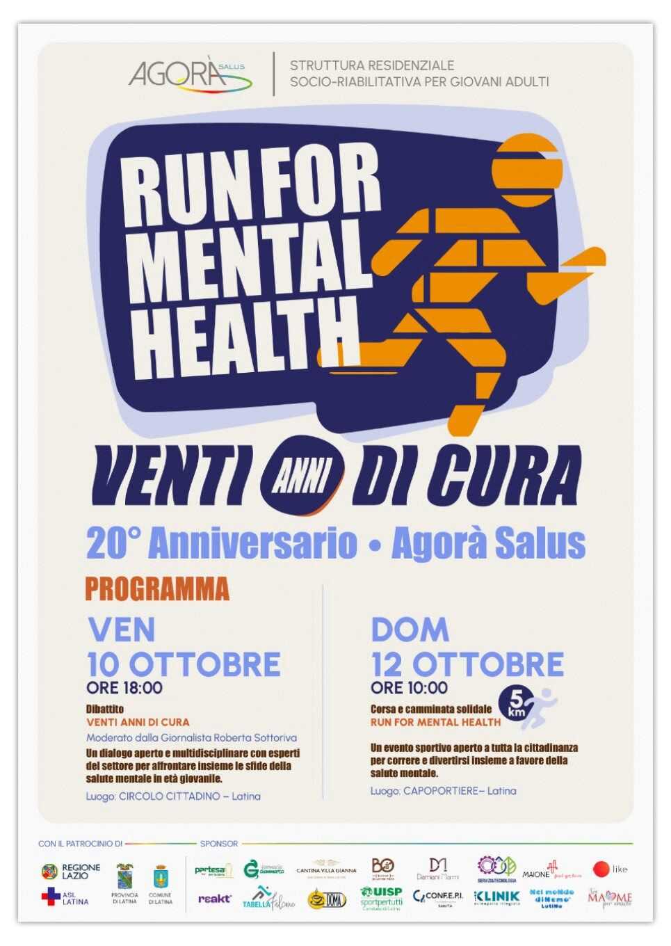 Al centro della giornata una realtà d’eccellenza: Agorà Salus, una piccola struttura residenziale psichiatrica accreditata con la Regione Lazio e convenzionata con il S.S.N. che opera a Latina e che ha cambiato il modo di guardare alla salute mentale giovanile. L’appuntamento sarà un’occasione per raccontare i vent’anni di lavoro di Agorà Salus, la sua ricerca e innovazione nei percorsi terapeutici e riabilitativi, e per riaffermare il valore della rete territoriale come strumento fondamentale per la cura e la prevenzione. Attraverso le testimonianze di professionisti, operatori e rappresentanti istituzionali, l’evento offrirà uno sguardo concreto sui risultati raggiunti e sulle sfide ancora aperte: dal bisogno di interventi precoci alle nuove forme di disagio emergenti tra i giovani adulti. Sarà anche l’occasione per lanciare un secondo evento per festeggiare il ventennale, dedicato alla promozione della salute mentale: la Run for Mental Health