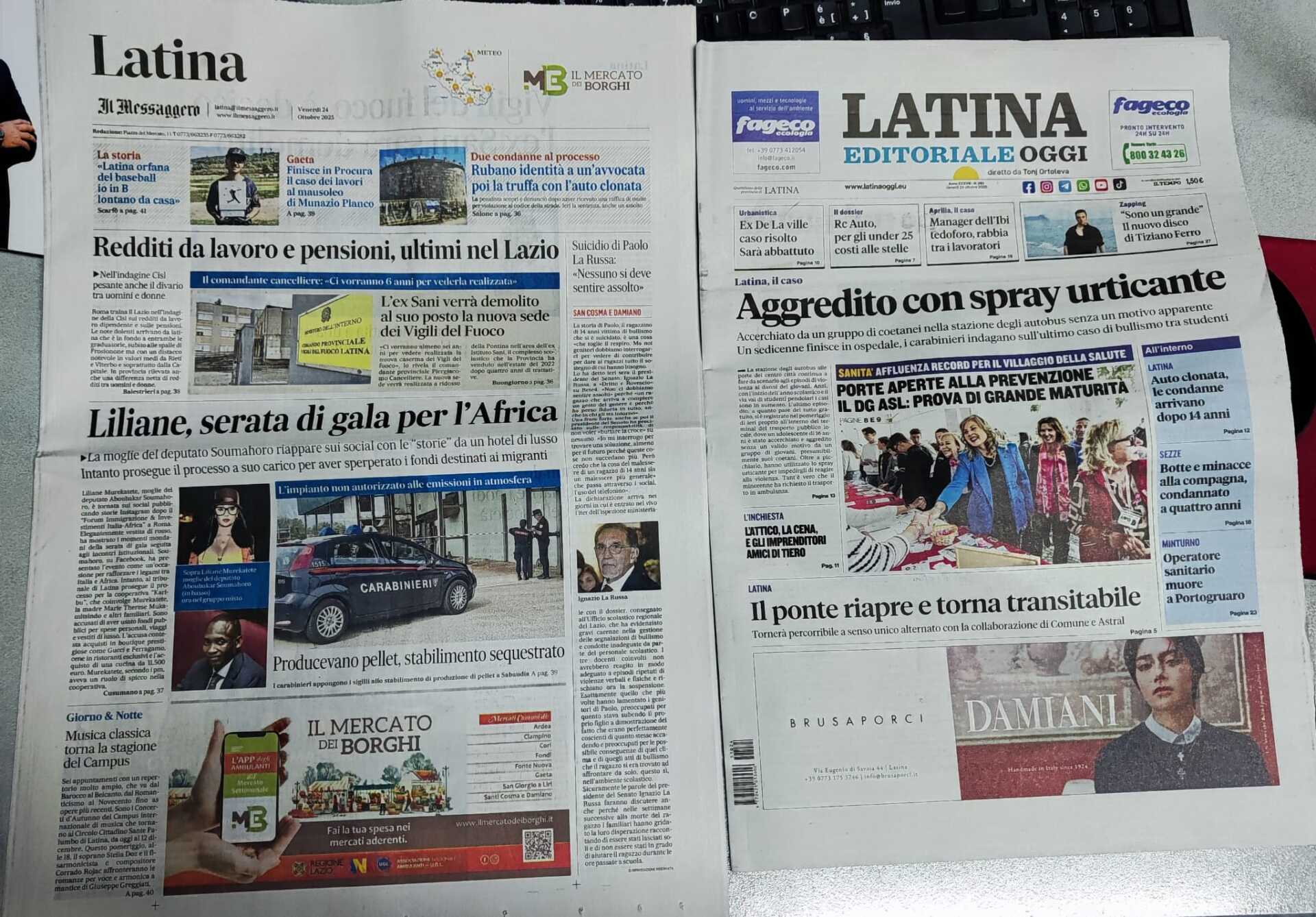I quotidiani di Latina in un click – 24 ottobre 2025
